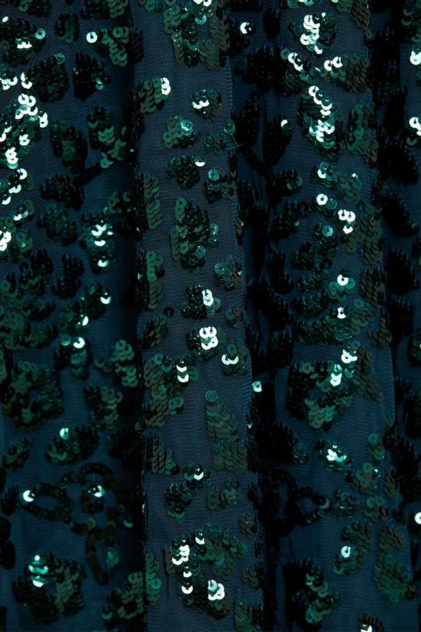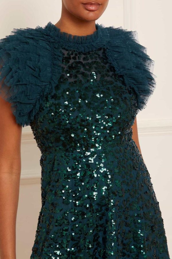 NEW SEASON ARRIVAL. The stunning Sequin Rose Ankle Gown in captivating Emerald green. This breathtaking new design sets the standard for the season ahead. Expertly crafted with signature Needle & Thread detailing, featuring the beloved statement sleeves from our iconic Genevieve style. Constructed with multiple layers of premium tulle and netting to achieve a dramatic, eye-catching silhouette that commands attention. This exquisite gown dazzles with shimmering sequins showcasing intricate rose embroidery throughout. Our design team is absolutely captivated by this exceptional new creation.