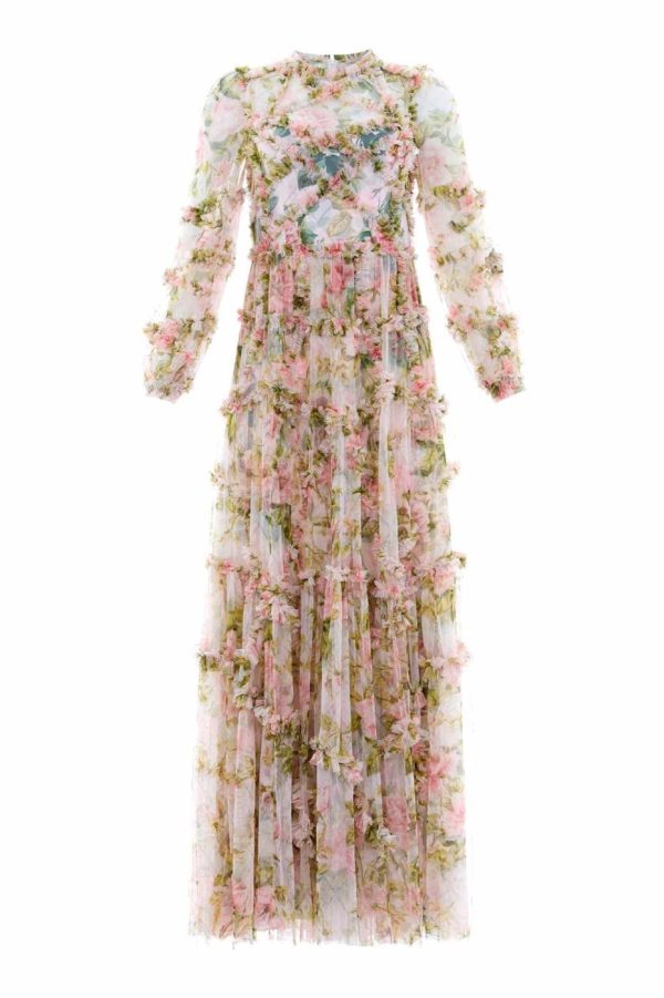 Needle & Thread English Rose Diamond Ruffle Gown in Sky Pink
