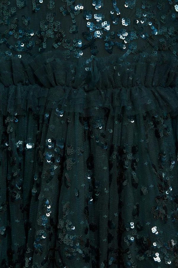 – A mixture of kisses tulle and plain tulle decorated with tonal sequins