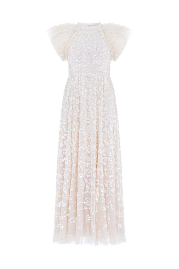 Sequin Rose Gloss Ankle Gown in Champagne | Needle & Thread