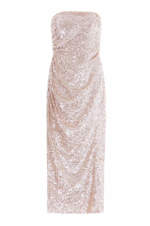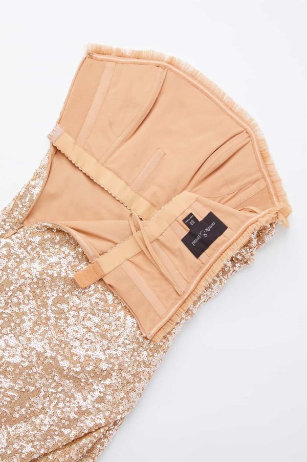 Stellar Gloss Strapless Ankle Gown in Gold | Needle & Thread