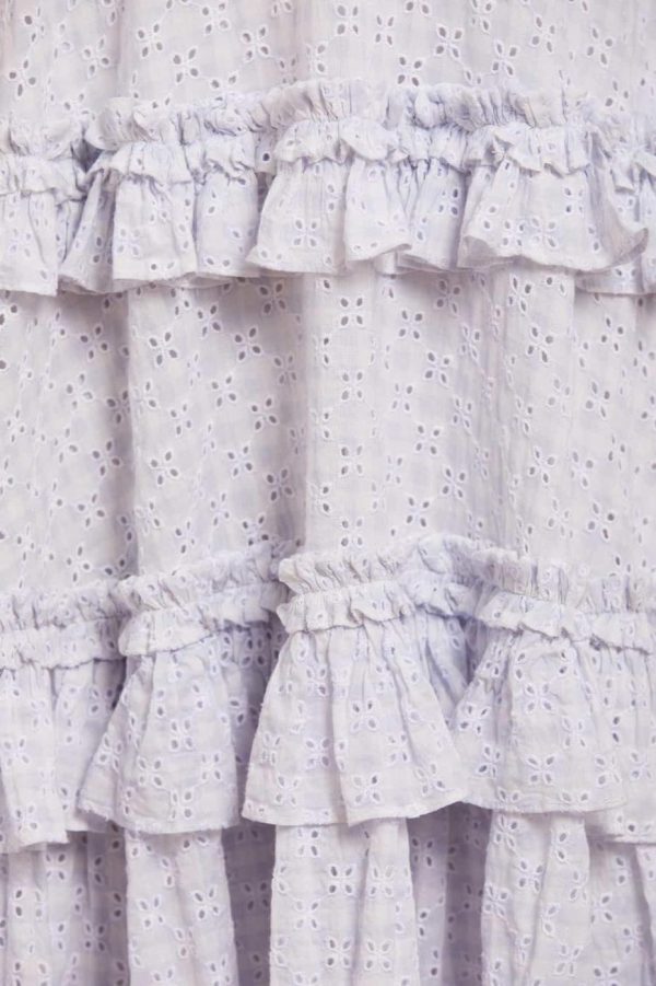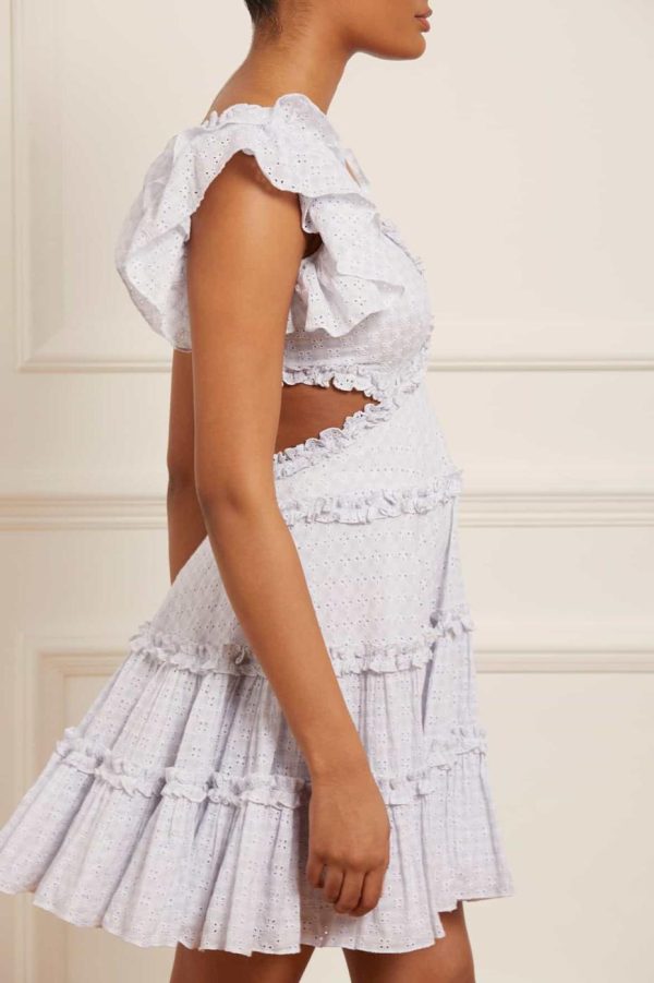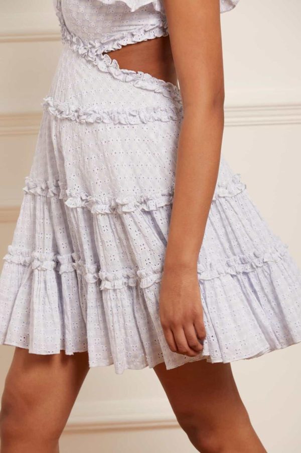 The Gingham Broderie Backless Micro Mini dress in Cornflower Blue. This backless dress is developed from soft cotton fabric. Beautifully printed in a gingham artwork with an all-over floral broderie. This romantic style is elegantly designed with ruffles for a signature Needle & Thread look, and a voluminous skirt for a striking silhouette. The perfect dress to take you from day-to-night.