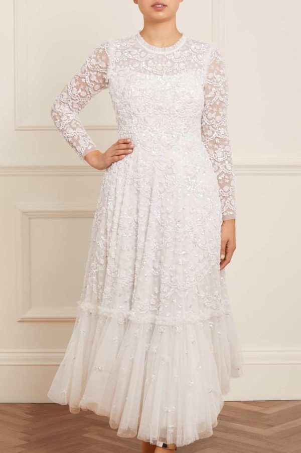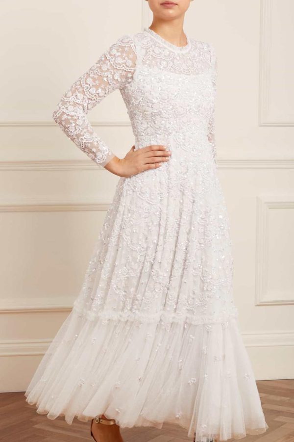 Women Needle & Thread Embellished Dresses | Alina Sequin Ankle Gown White