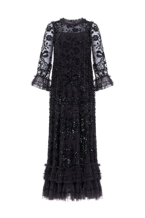 Women Needle & Thread Embellished Dresses | Celia Long Sleeve Ankle Gown Black
