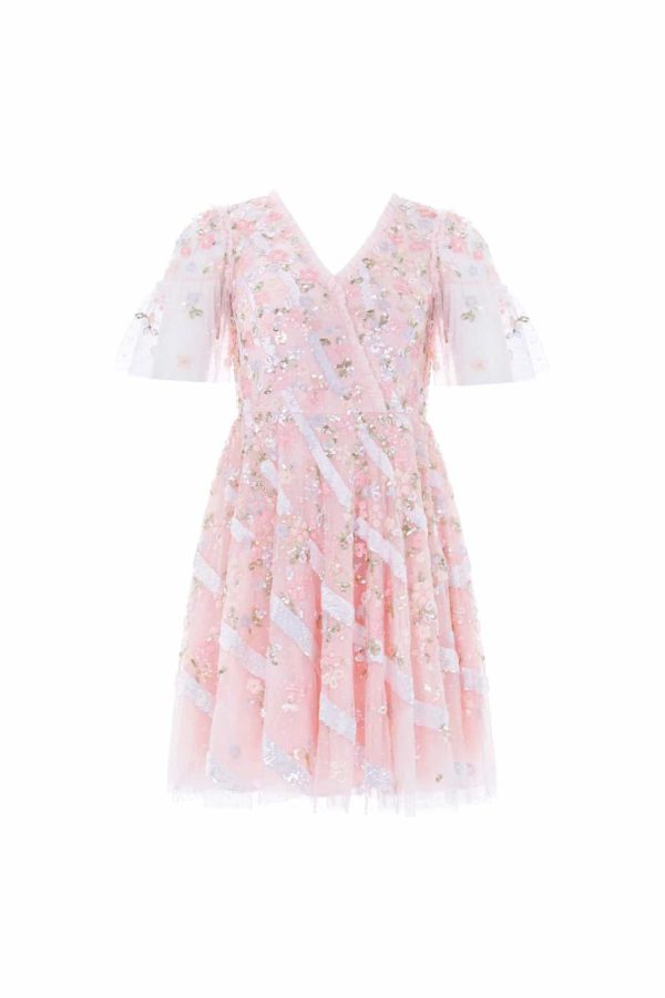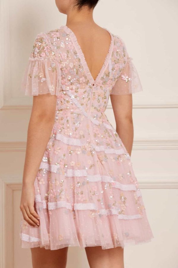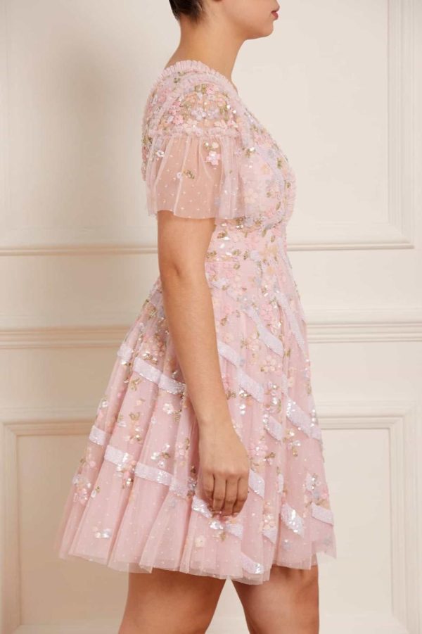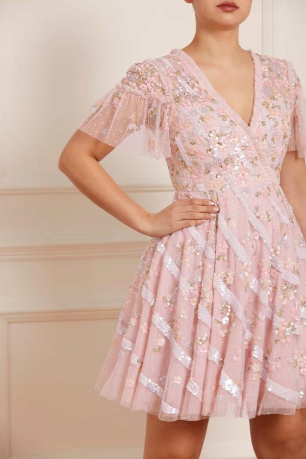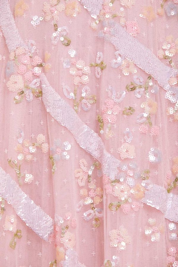 The Dianella Sequin Mini Dress in Blush Pink. This mini dress is decorated with high-shine sequins in striking silvers and soft pastel shades. Designed with our statement Needle & Thread skirt shape, crafted using layers of net to hold the shape and to create the perfect sweeping hemline. Features delicate tiering on the sleeves for a soft, romantic edge. Make the Dianella your new wardrobe favourite.