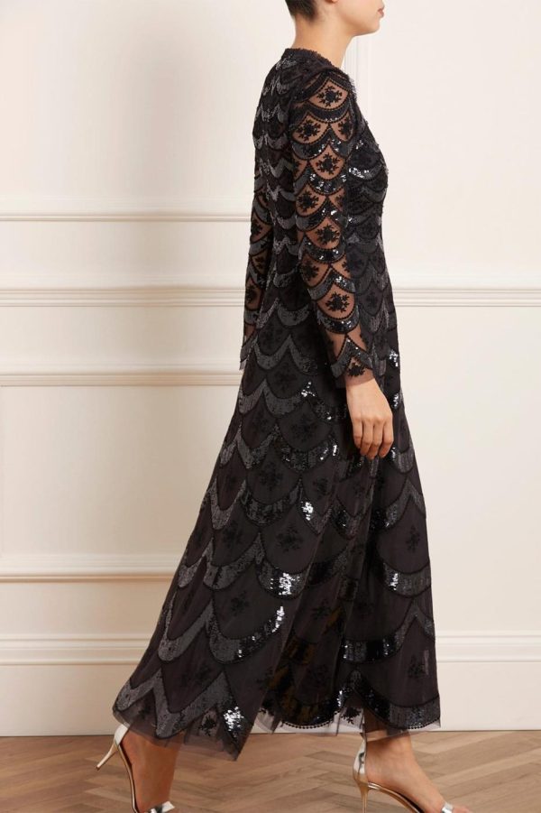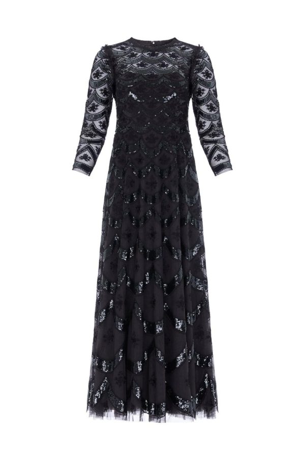 Women Needle & Thread Embellished Dresses | Fifi Long Sleeve Ankle Gown Black