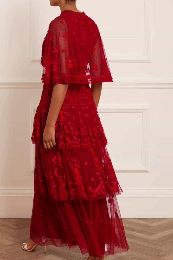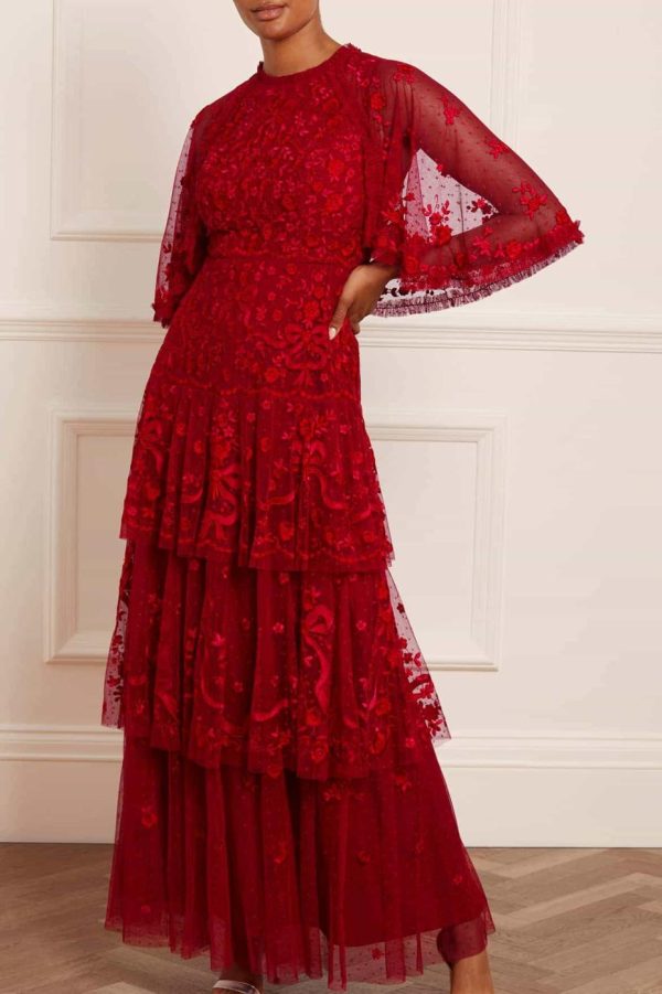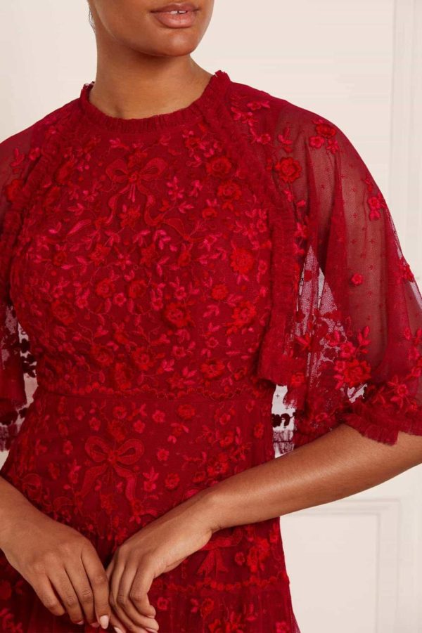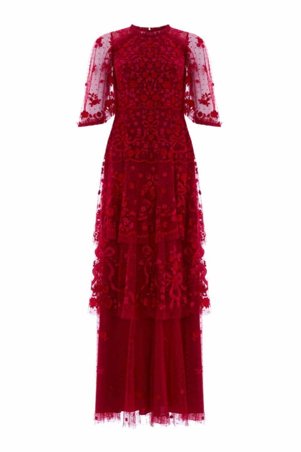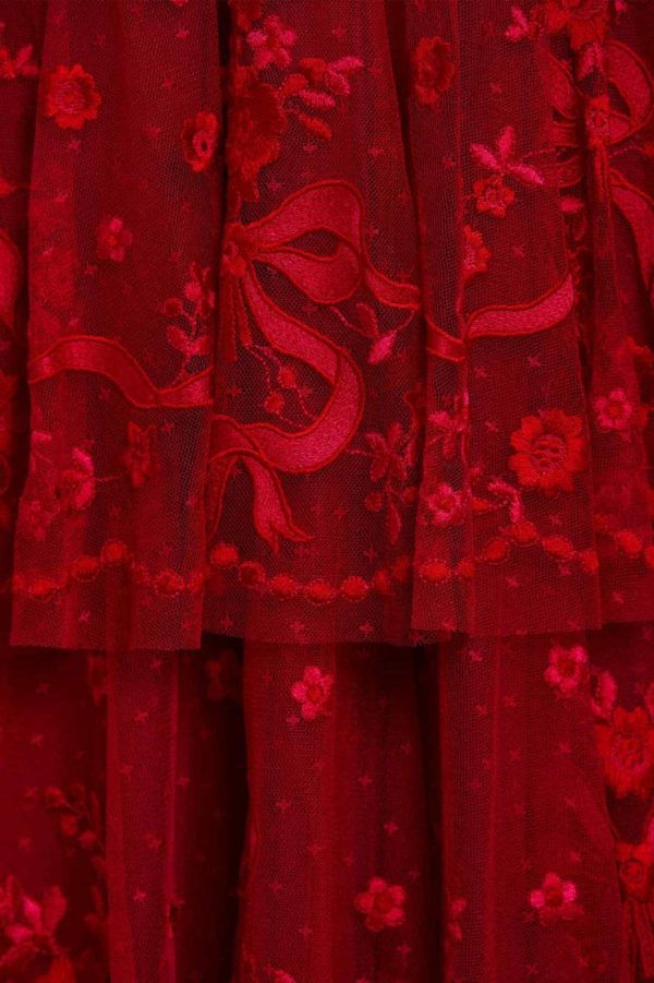 Women Needle & Thread Embroidered Dresses | Bonnie Bow Gown Red