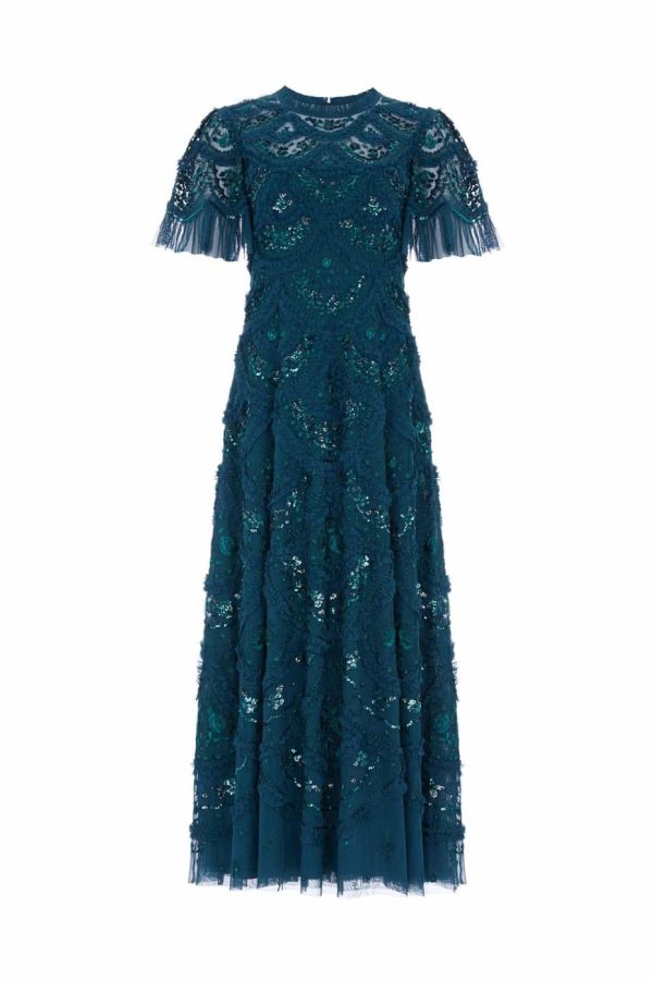 Women Needle & Thread Embroidered Dresses | Carmen Ruffle Ankle Gown Green