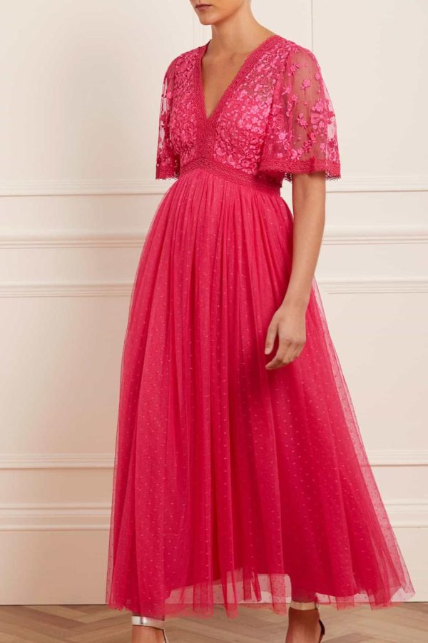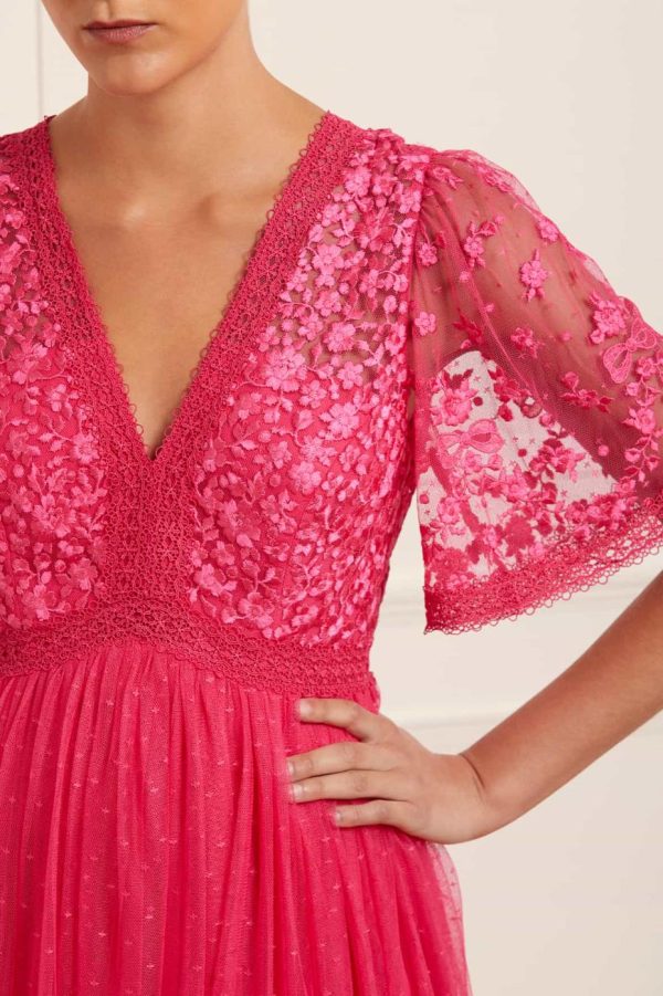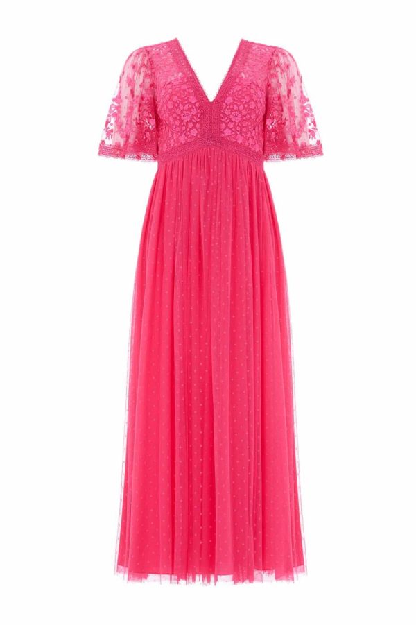 Women Needle & Thread Embroidered Dresses | Celestia Ribbon Bodice Ankle Gown Pink