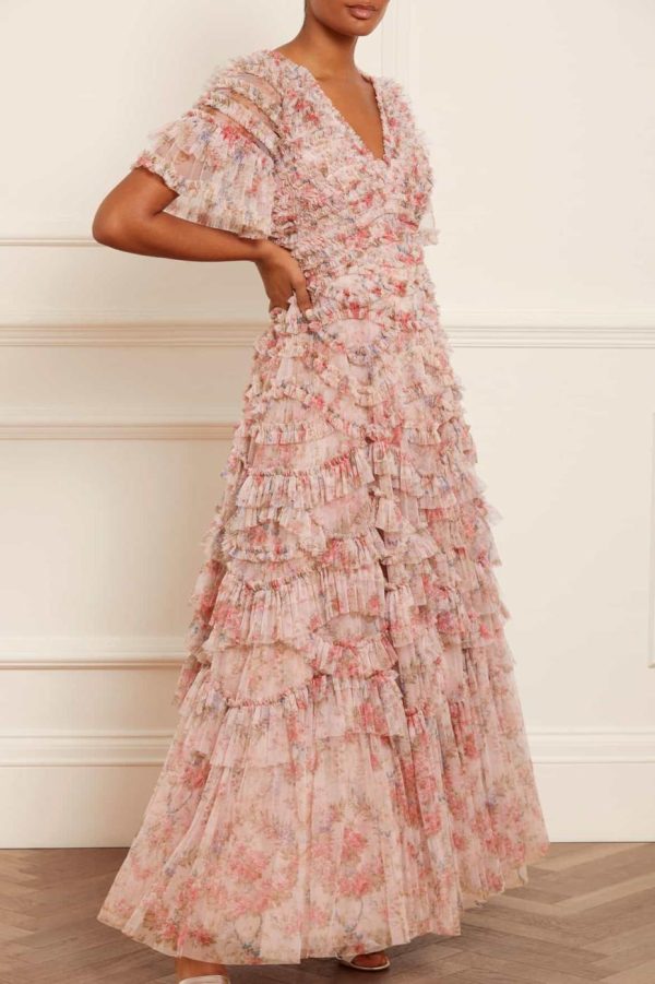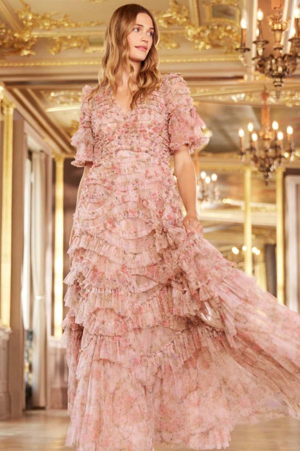 Women Needle & Thread Evening Dresses | Floral Wreath Phoenix V-Neck Gown Pink