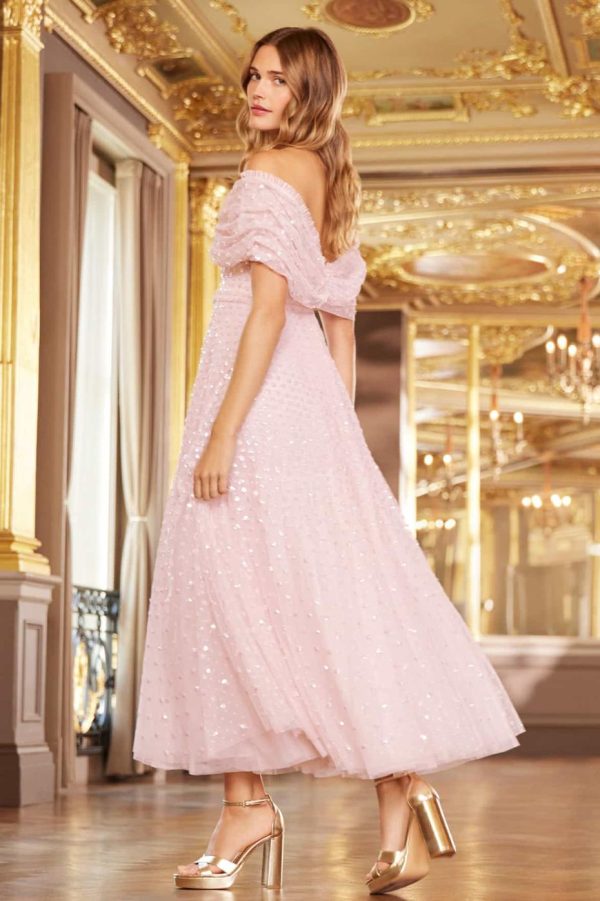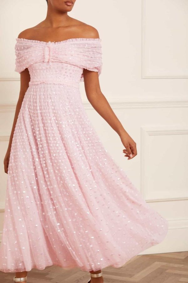 Women Needle & Thread Evening Dresses | Grace Gloss Off-Shoulder Ankle Gown Pink