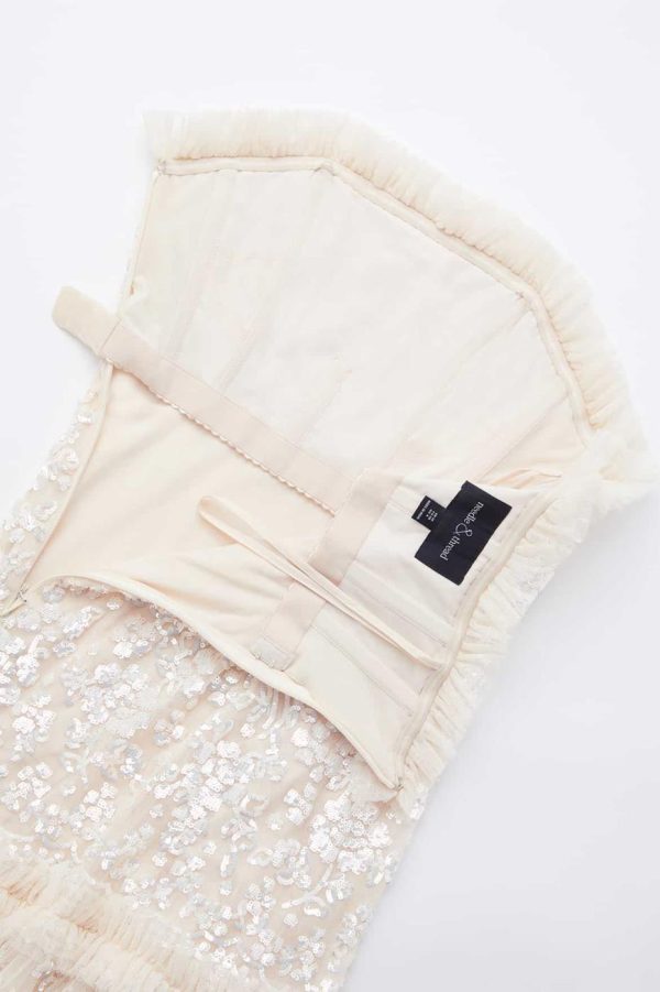 – A mixture of kisses tulle and plain tulle decorated with tonal sequins