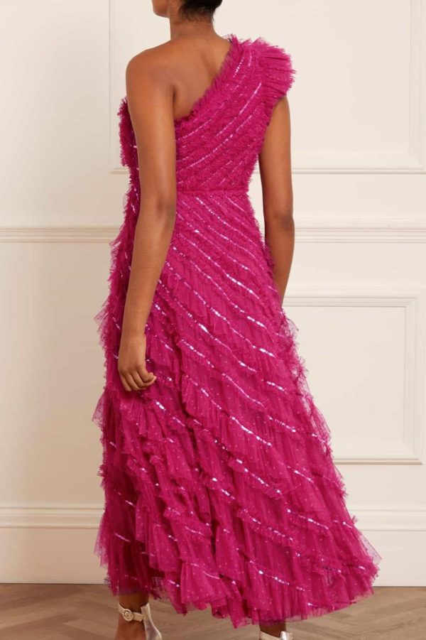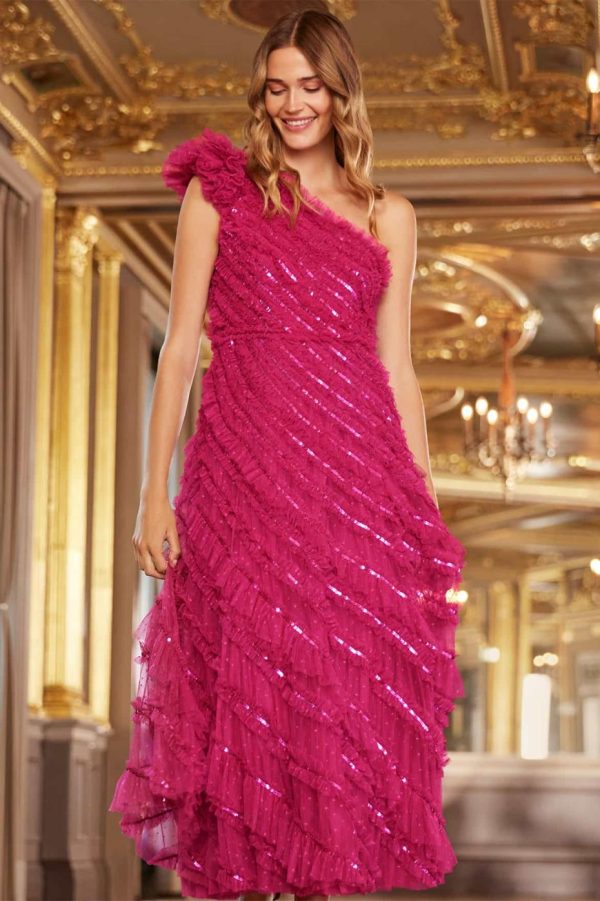 Women Needle & Thread Evening Dresses | Spiral Sequin One-Shoulder Ankle Gown Pink