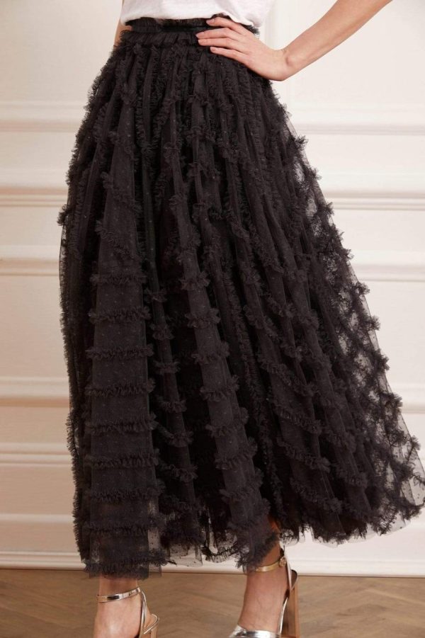 NEEDLE & THREAD EXCLUSIVE. The Florence Ruffle Ankle Skirt in Graphite. This beautiful skirt is crafted with layers of tulle, creating a voluminous romantic look. The ankle-length skirt is designed elegantly with a satin waistband and gathered neatly with tulle trims. Pair with your favourite top and make an entrance this season.