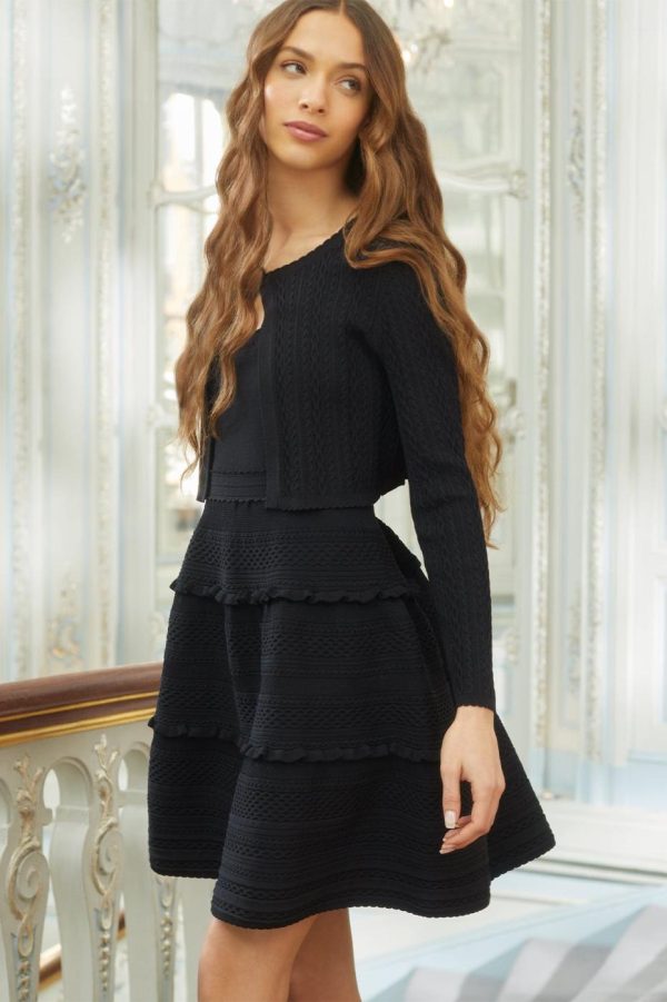 Women Needle & Thread Knitwear | Textured Knit Crop Cardigan Black