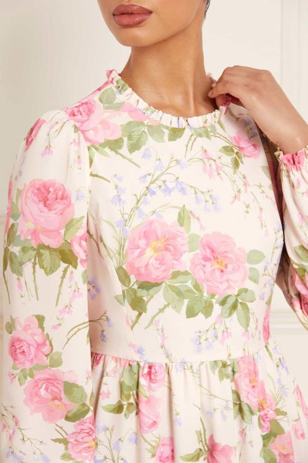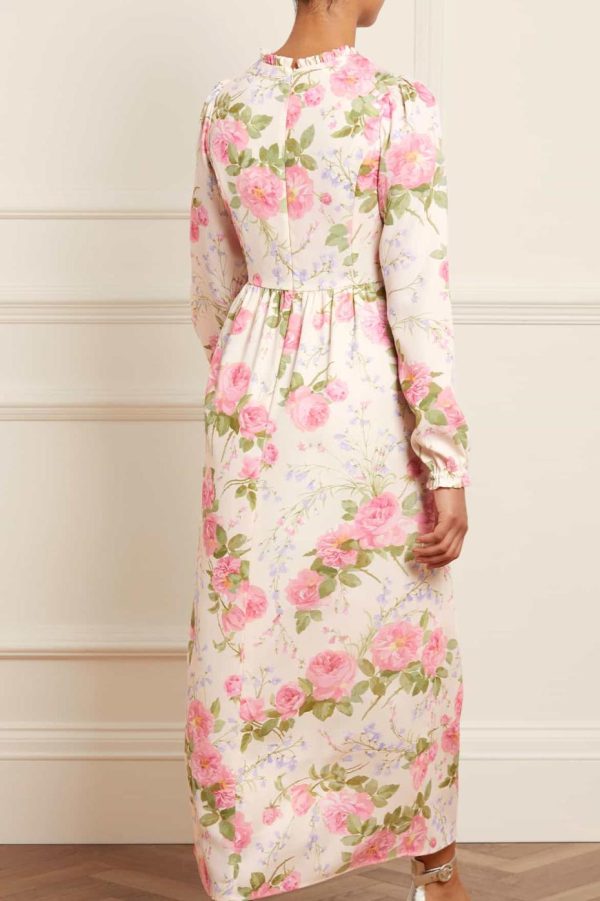NEEDLE & THREAD EXCLUSIVE. The Rose Bluebell Ankle Dress in Moonshine. This dress features a beautiful summer print, inspired by a 1900’s hand painted artwork. Intricately designed with soft, painted roses in the prettiest, intertwining design. Crafted with a 1930’s tea-dress shape and pleat details, this dress has an effortless, easy-to-wear silhouette. Make the Rose Bluebell your new wardrobe staple.